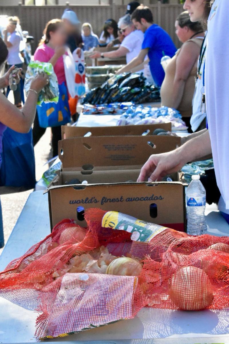 - Assist in the set up of our market with about 6-8 other volunteers by putting out tables, moving food on carts from our storage area into the parking lot and setting up foods in an attractive, “market-style” arrangement on tables for families to select from